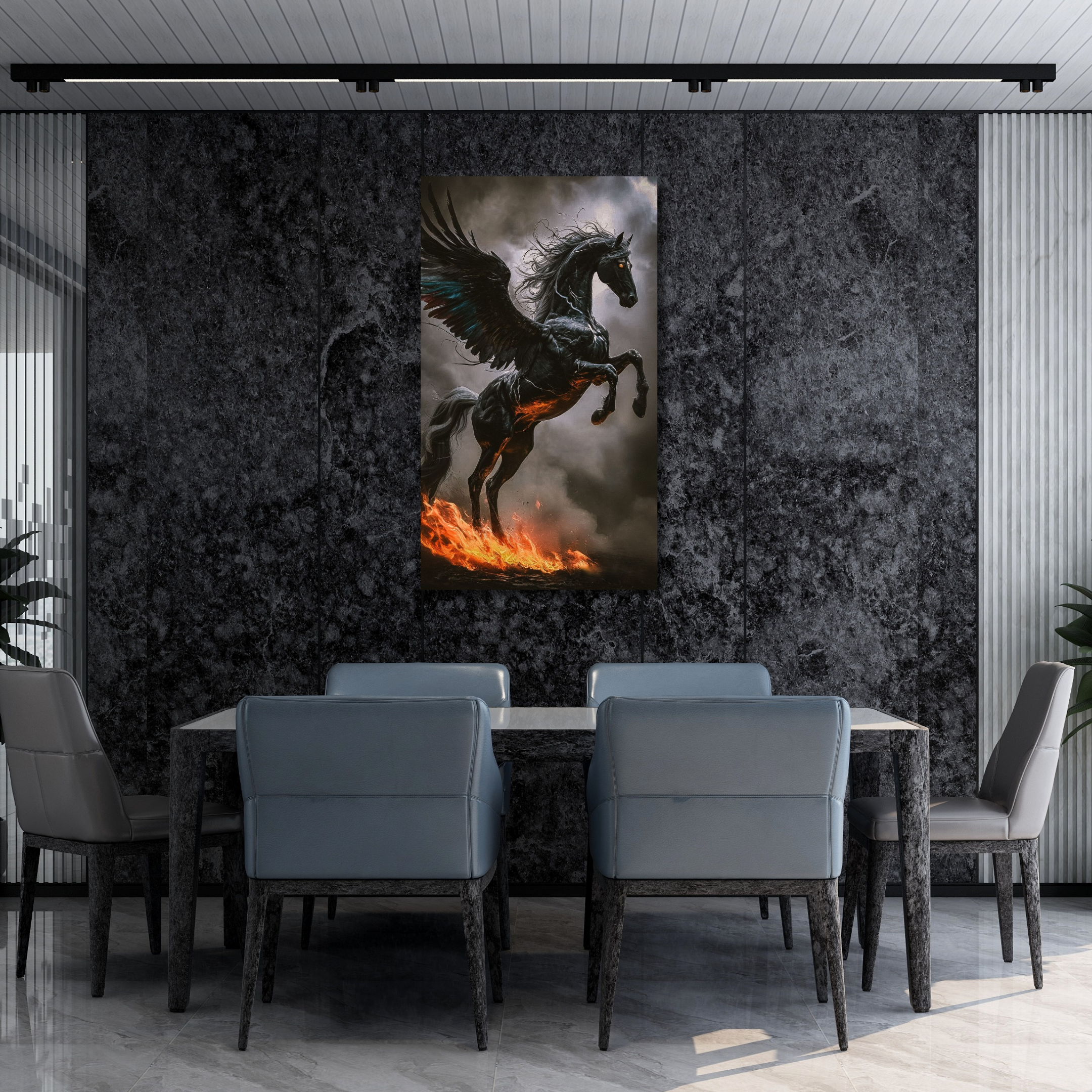 Pegaso negro de fuego